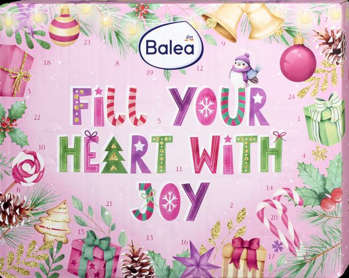 Die schönste Zeit des Jahres beginnt – erfüllt von Vorfreude, Wärme und funkelnden Momenten. Mit den Adventskalendern von Balea wird der Countdown bis Weihnachten zu einem ganz besonderen Erlebnis. Ob der festliche Balea Adventskalender „Fill your heart with joy“, der Balea MEN Adventskalender mit pflegenden Überraschungen für Männer oder der Balea Face Adventskalender, der jeden Tag hochwertige Wirkstoffkosmetik für die Gesichtspflege bereithält – hinter jedem Türchen verbirgt sich eine liebevoll ausgewählte Überraschung für tägliche Wohlfühlmomente.